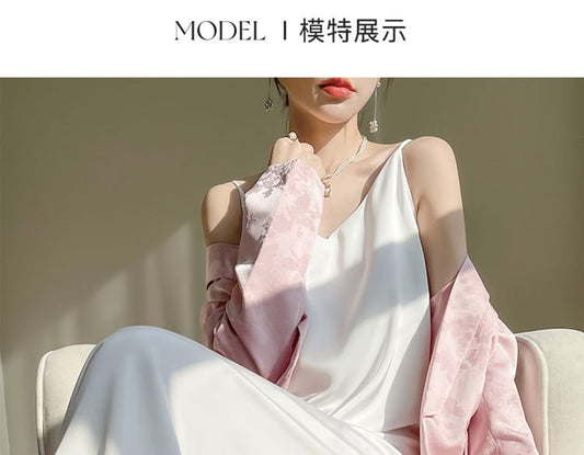 Spaghetti Strap V-Neck Print Midi Dress