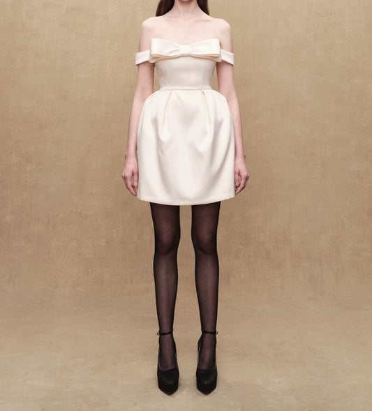 Off-Shoulder Plain Bow Mini A-Line Dress