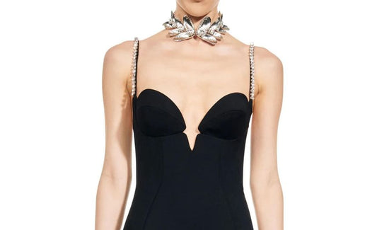Spaghetti Strap Rhinestone Bow Faux Pearl Mini Bodycon Dress
