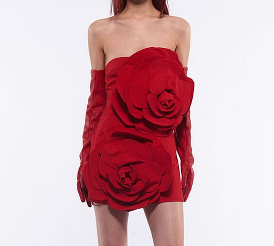 Strapless Plain Flower Detail Mini Sheath Dress