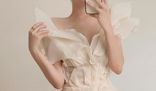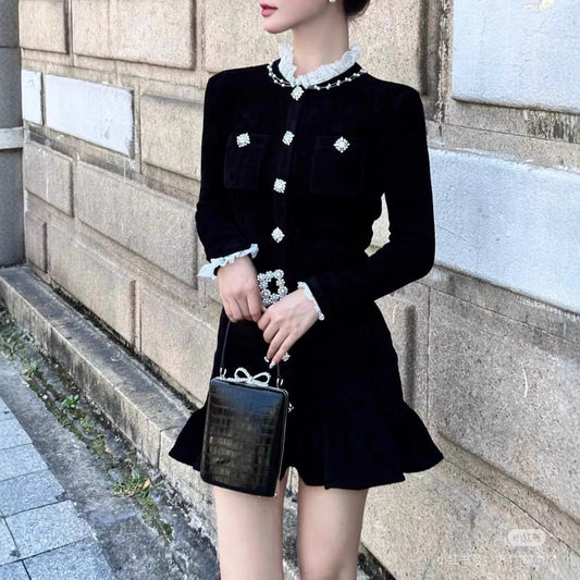 Long-Sleeve Frill Trim Plain Mini Mermaid Dress