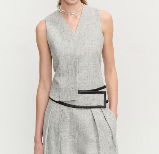 V-Neck Asymmetrical Vest / Midi A-Line Skirt