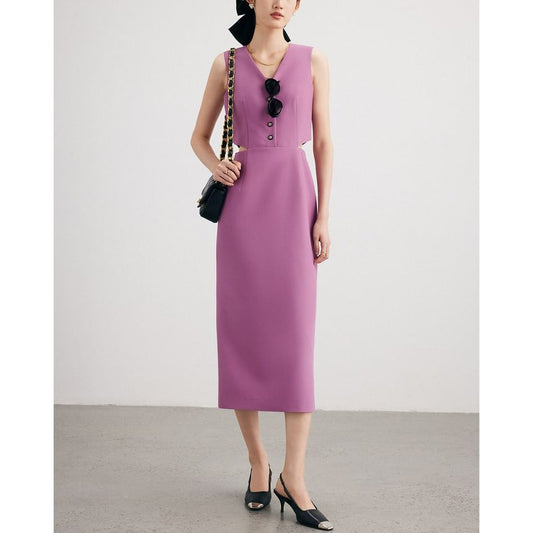 Sleeveless V-Neck Cutout Plain Maxi Sheath Dress