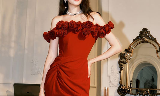 Short-Sleeve Off Shoulder Floral Accent Maxi A-Line Dress