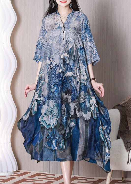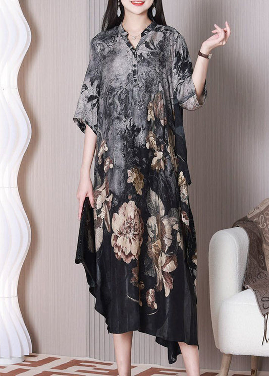 Boho Grey Asymmetrical Design Print Silk Dresses Half Sleeve LY3771