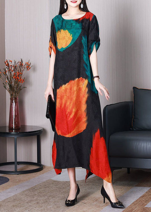 Classy Black Asymmetrical Print Silk Robe Dresses Summer LY3761