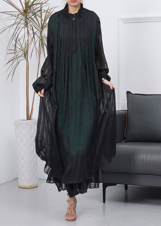 Women Black Oversized Wrinkled Cotton Long Dress Spring LY3757