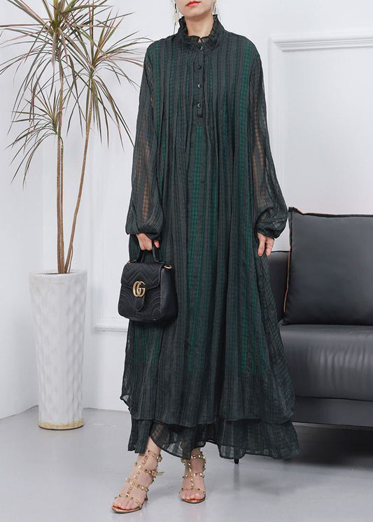 Green Loose Cotton Fake Two Piece Dress Ruffled Spring LY3758