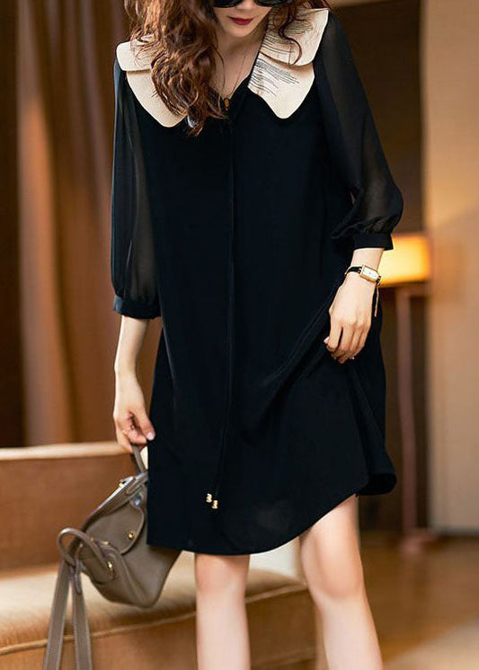 Style Black Peter Pan Collar Patchwork Chiffon Dress Spring LY3865