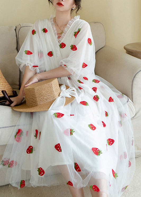 Cute White Patchwork Tulle Maxi Dress Summer TI1022