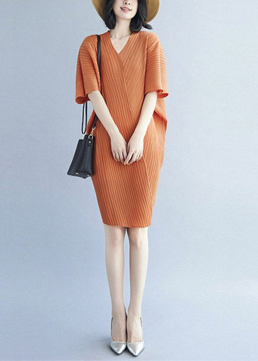 Loose Green Patchwork Wrinkled Solid Mid Dresses Summer TI1021