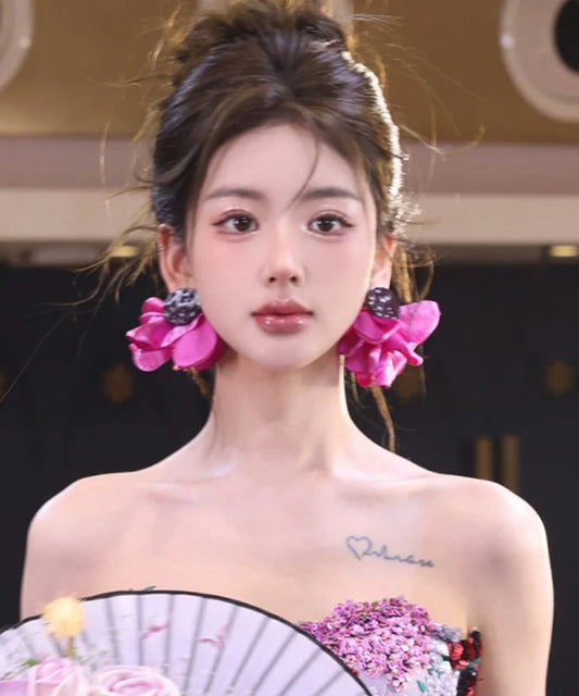 Oversize Purple Fabric Floral Stud Earrings 19543