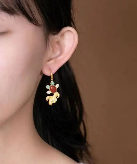 Beautiful Yellow Sterling Silver Overgild Agate Zircon Turquoise Goldfish Drop Earrings LY8977
