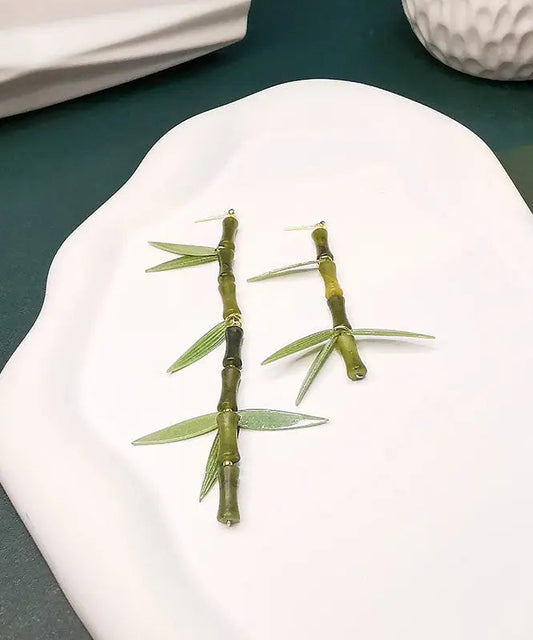 DIY Green Silver Inlaid Gem Stone Bamboo Knot Drop Earrings LY8967