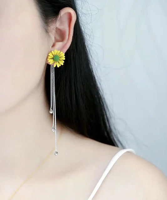 Modern Yellow Sterling Silver Overgild Pearl Little Daisy Drop Earrings LY8971