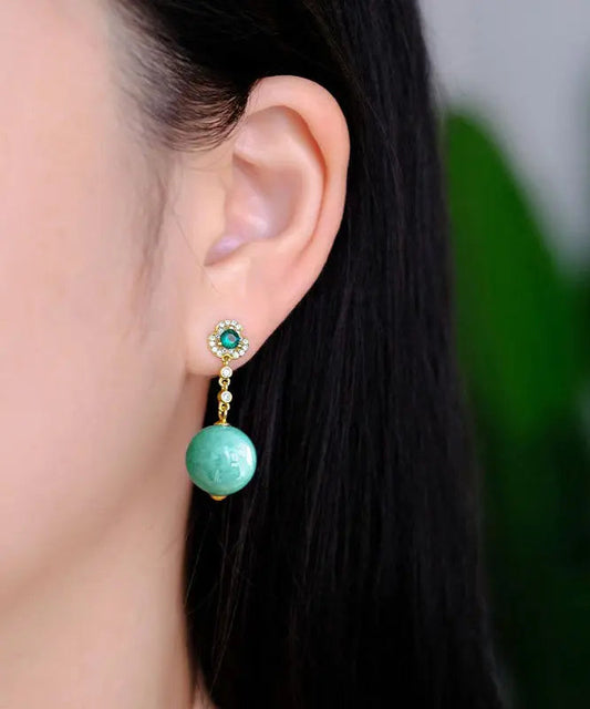 Style Green Sterling Silver Overgild Zircon Jadeite Drop Earrings LY8984