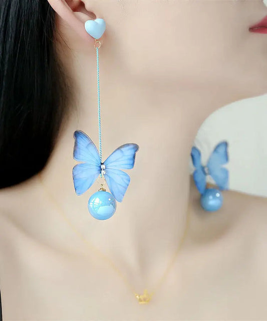 Fashion Blue Sterling Silver Zircon Pearl Crystal Butterfly Water Droplet Drop Earrings LY8980