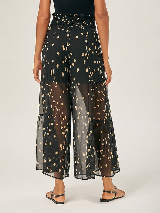 Polka Dot Chiffon Wide-Leg Culottes