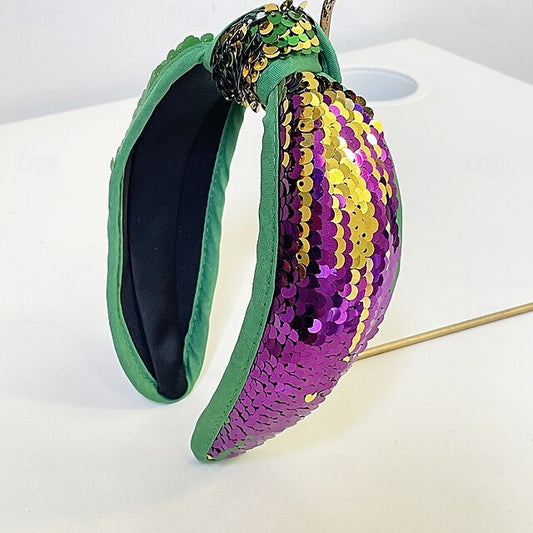 Mardi Gras Headband for Women Glitter Purple Green Yellow Sequin