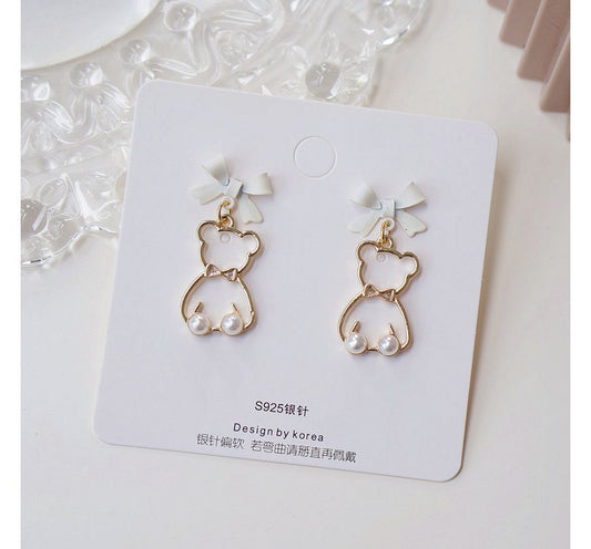 Faux Earring Alloy Rhinestone Star Pearl Drop