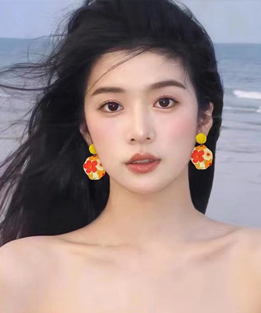 Yellow Hoop Earrings Floral Pearl Fashion Alloy Acrylic