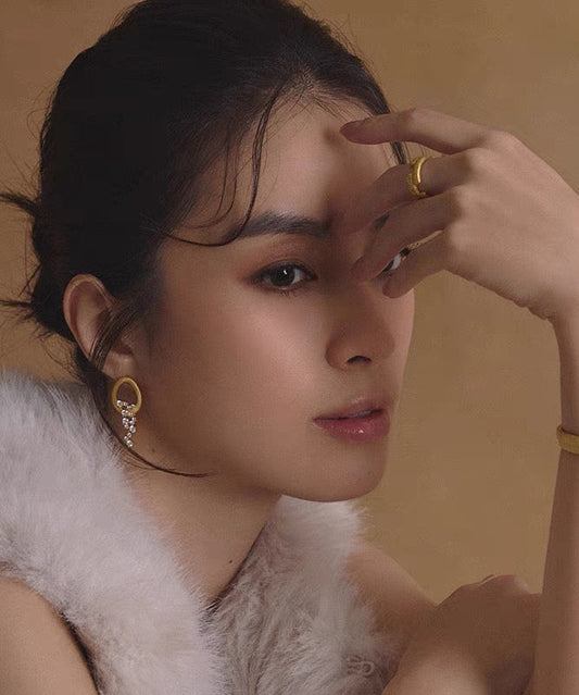 Design Pearl Copper Stud Alloy Zircon Earrings Gold Original