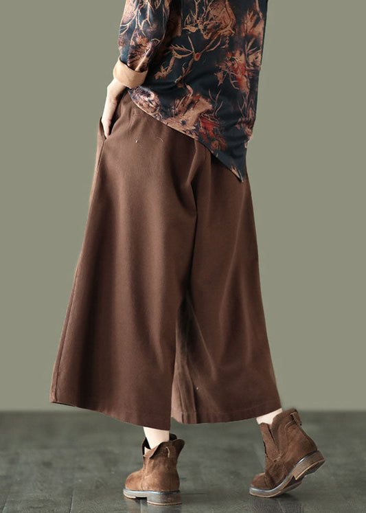 Art Chocolate Elastic Waist Patchwork Cotton Wide Leg Pants Spring TG1004