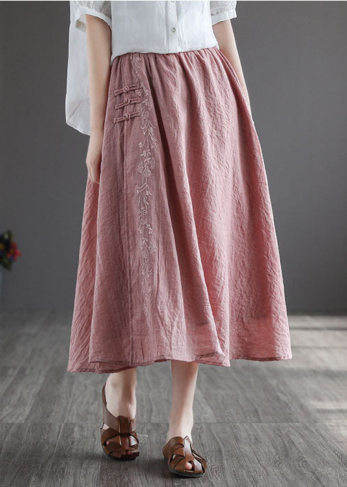 Women Pink Embroideried Chinese Button Linen Skirts Spring TG1022