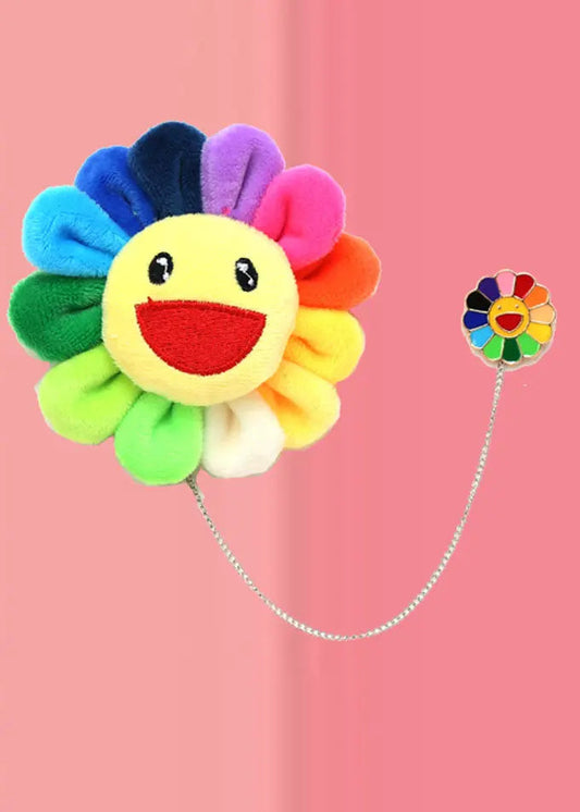 Beautiful Rainbow Fuzzy Fur Fluffy Sunflowers Brooches ML0275