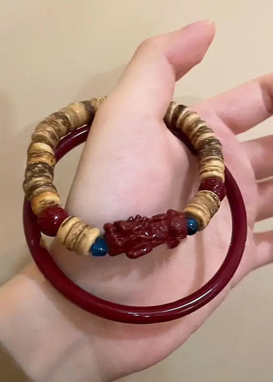 Chinese Style Cinnabar Glass Coconut Shell Beads Bangle ML0274