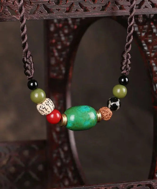 Handmade Brown Hand Knitting Turquoise Pipal Tree Seed Gratuated Bead Necklace ML0269