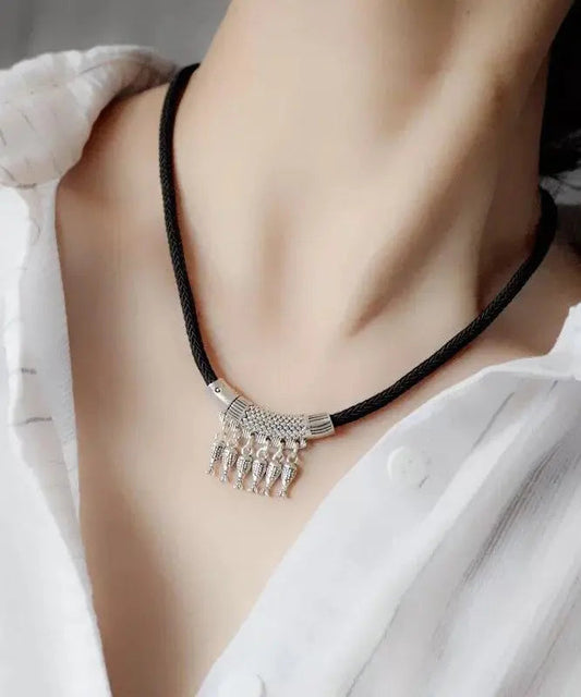 Unique Sterling Silver Fish Knitting Tassel Choker ML0286
