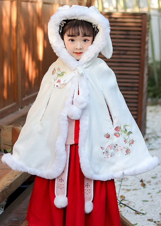 Loose Red Embroideried Kids Hooded Cloak Winter ML0160