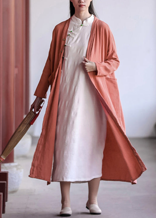 Fashion Brick Red Button Pockets Patchwork Cotton Long Coat Fall ML0058