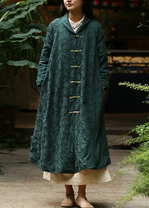 Jacquard Blackish Green Button Pockets Warm Fleece Long Coat Winter ML0063