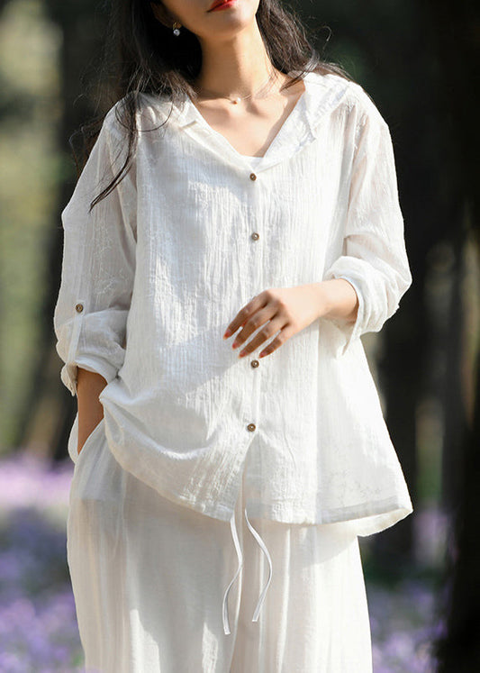Women White Hooded Button Patchwork Cotton Coats Long Sleeve ML0061