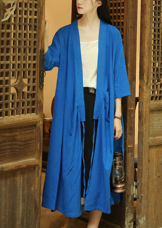 Loose Treasure Blue V Neck Lace Up Patchwork Cotton Coats Fall ML0093