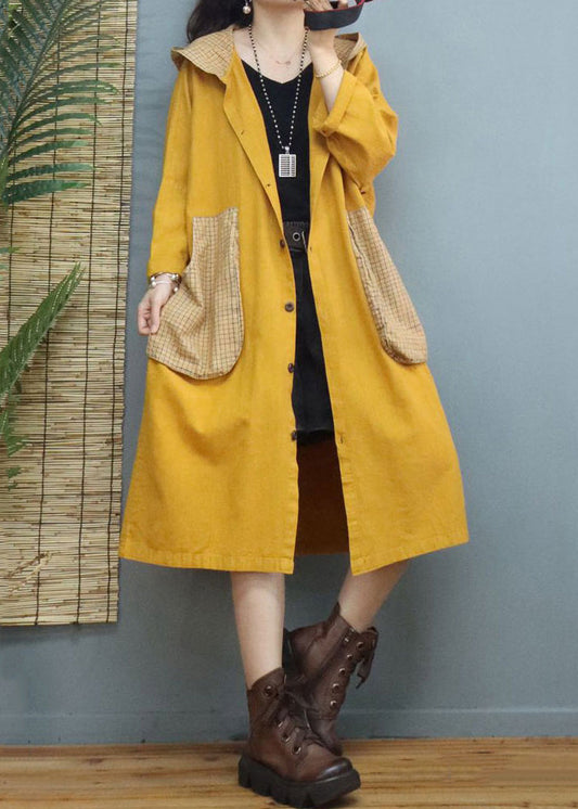 Yellow Button Patchwork Long Cotton Coats Hooded Long Sleeve ML0100