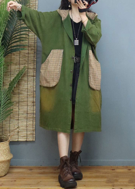 Plus Size Green Plaid Pockets Patchwork Cotton Coats Fall ML0079