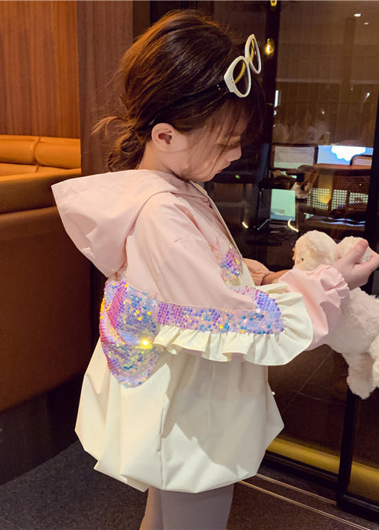 Chic Pink Hooded Sequins Ruffled Cotton Girls Coat Fall ML0034
