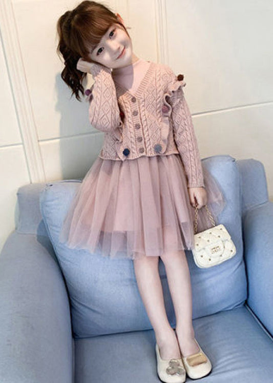 Cute Green O Neck Tulle Patchwork Knit Girls Two Pieces Set Fall ML0031