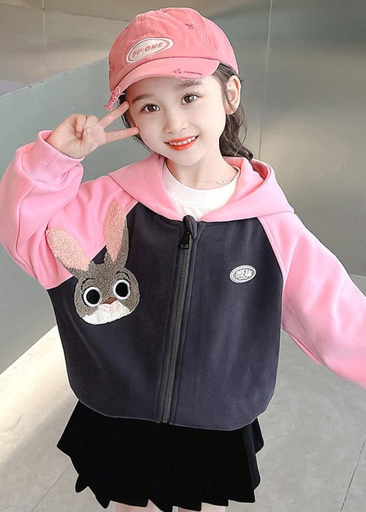 Cute Pink Hooded Print Patchwork Cotton Girls Coats Fall ML0043