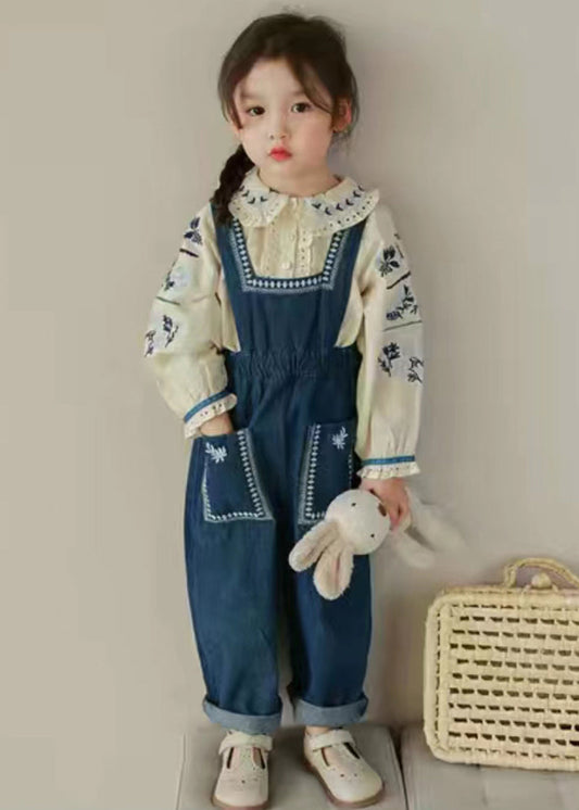 New Embroideried Ruffled Shirts And Denim Pants Girls Two Pieces Set FallML0039