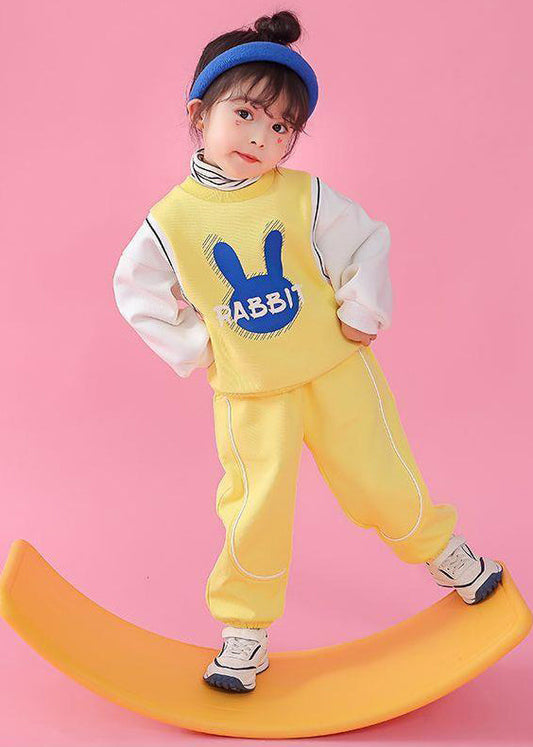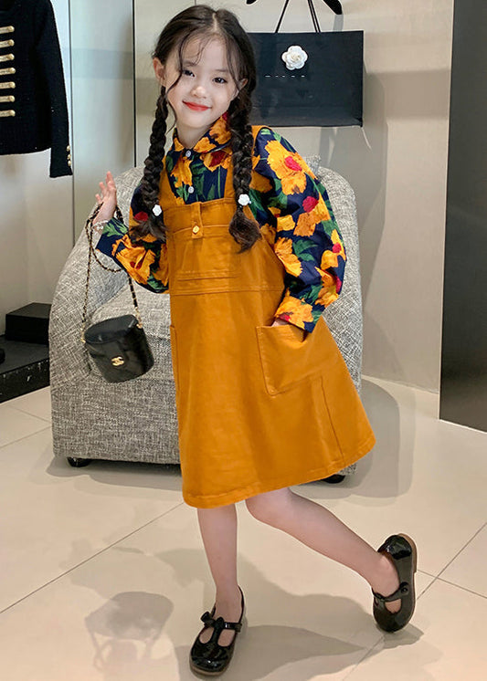 Yellow Pockets Patchwork Cotton Kids Two Pieces Set Print Long Sleeve ML0046