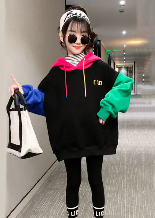 Cute Colorblock Hooded Print Patchwork Cotton Girls Sweatshirt Winter ML0033