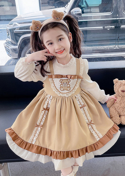 Cute Beige Peter Pan Collar Tulle Patchwork Cotton Girls Dresses FallML0037