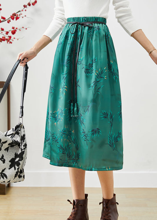 Beautiful Green Embroideried Bow Silk A Line Skirt Fall LY9880