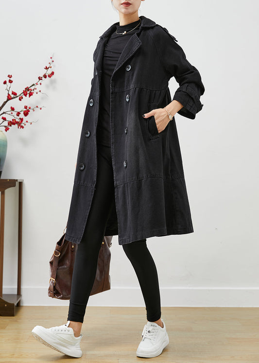 Black Loose Denim Coat Outwear Peter Pan Collar Double Breast Fall LY9868