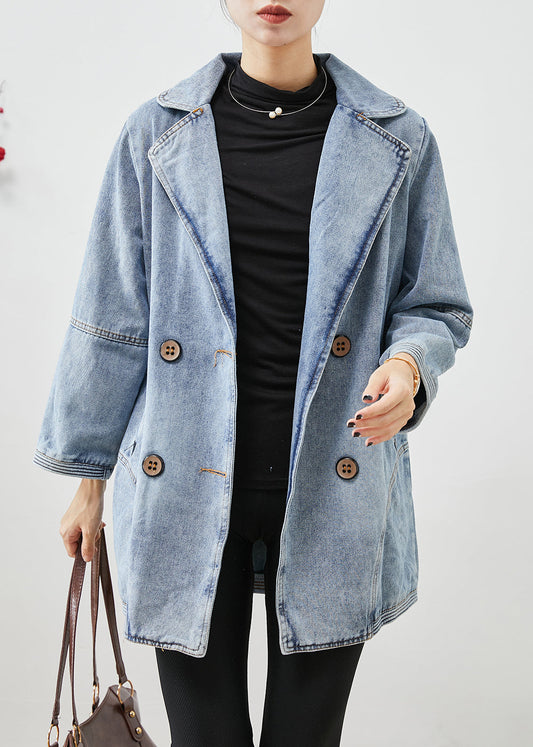 Simple Light Blue Double Breast Patchwork Denim Jackets Fall LY9865