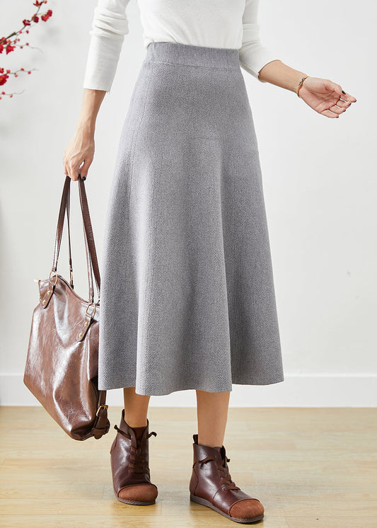 Stylish Grey Elastic Waist Exra Large Hem Cotton Skirt Fall LY9861